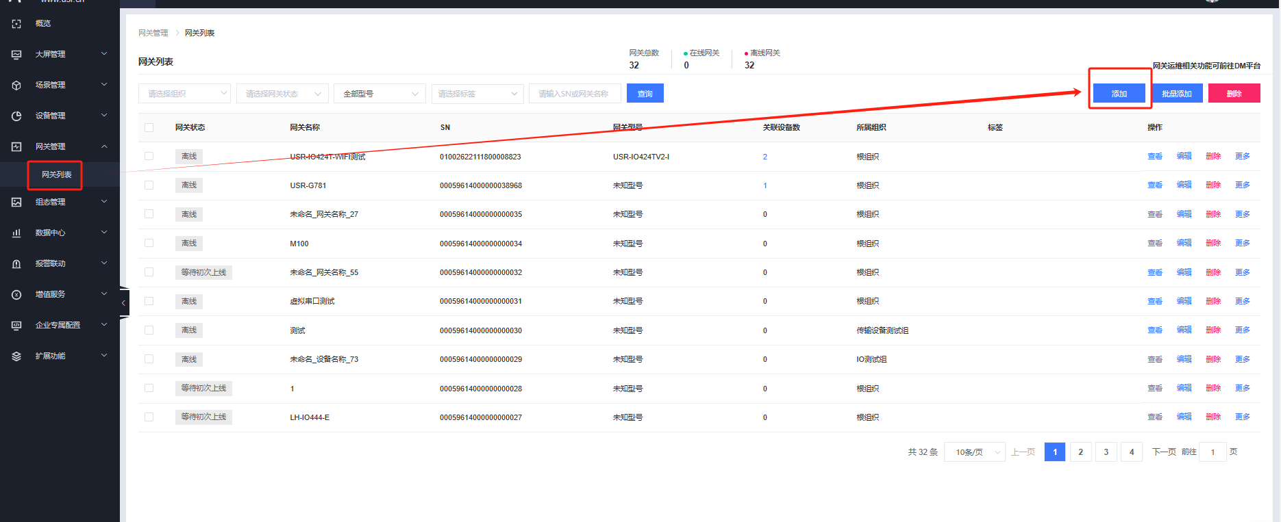 網(wǎng)關(guān)管理--網(wǎng)管列表--添加