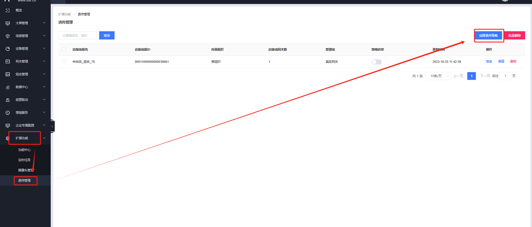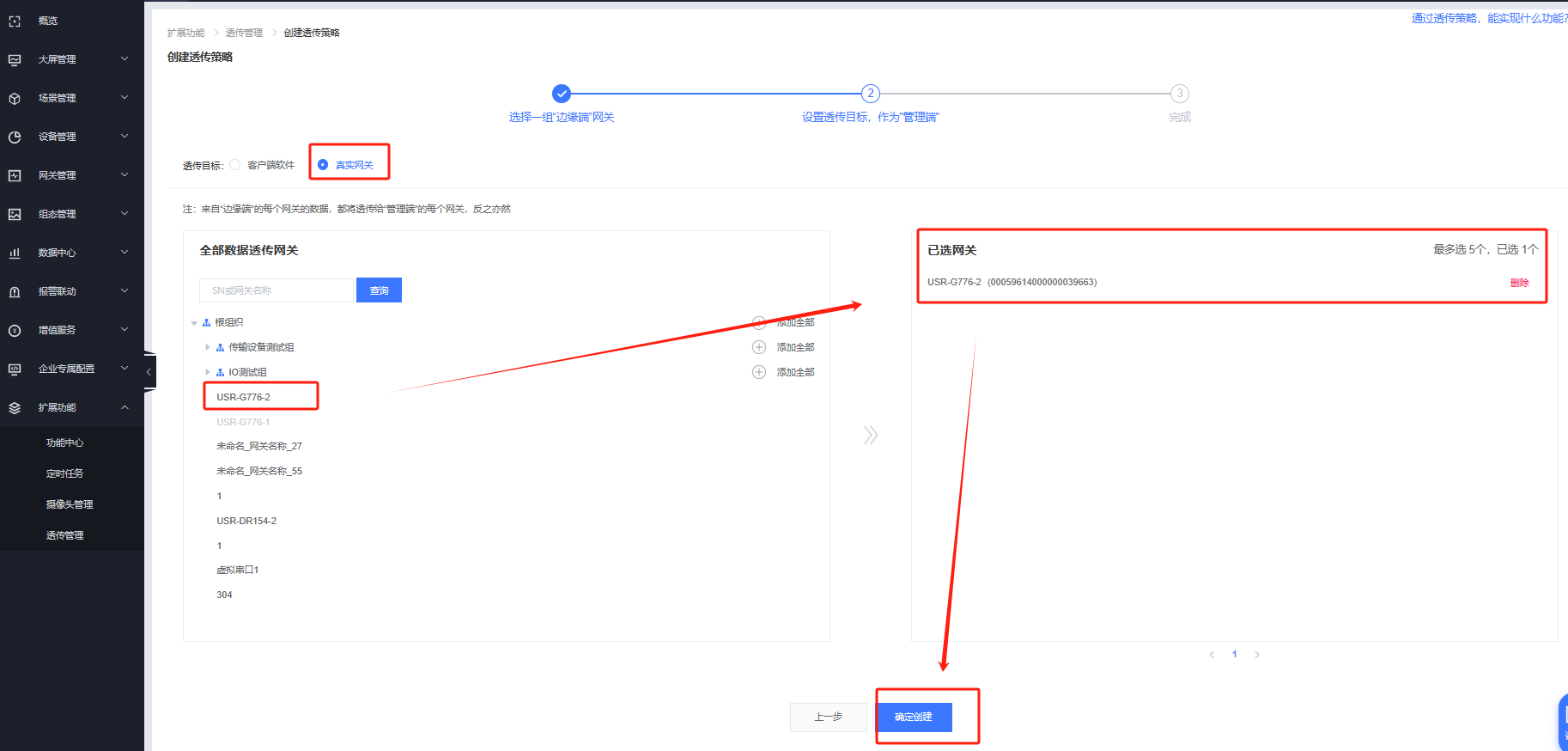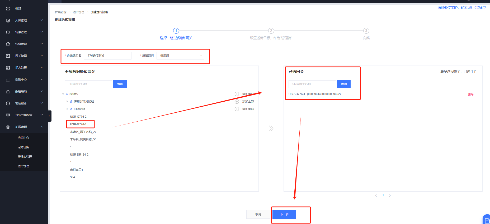 設(shè)置透?jìng)髅Q,選擇組織,選擇邊緣端網(wǎng)關(guān)