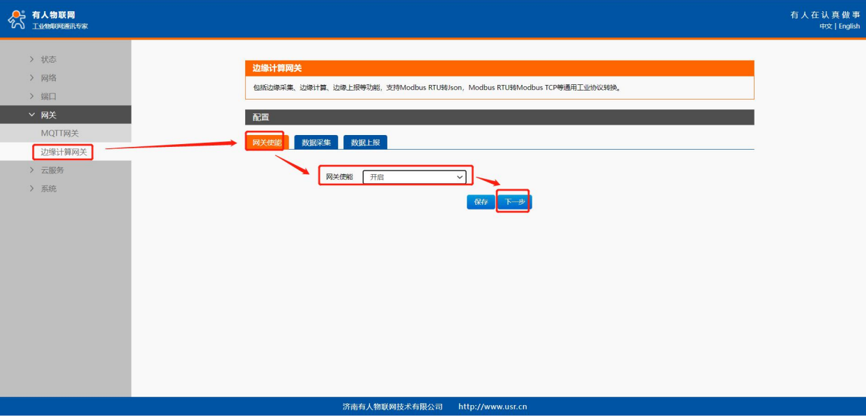 在“網(wǎng)關(guān)使能”配置項中將“網(wǎng)關(guān)使能”開啟