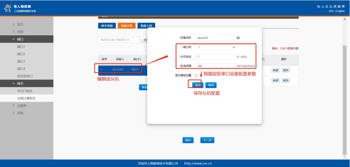 (2) 在“數(shù)據(jù)采集”配置頁選中默認從機,點擊“編輯”
