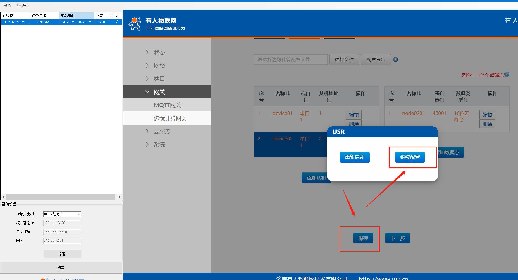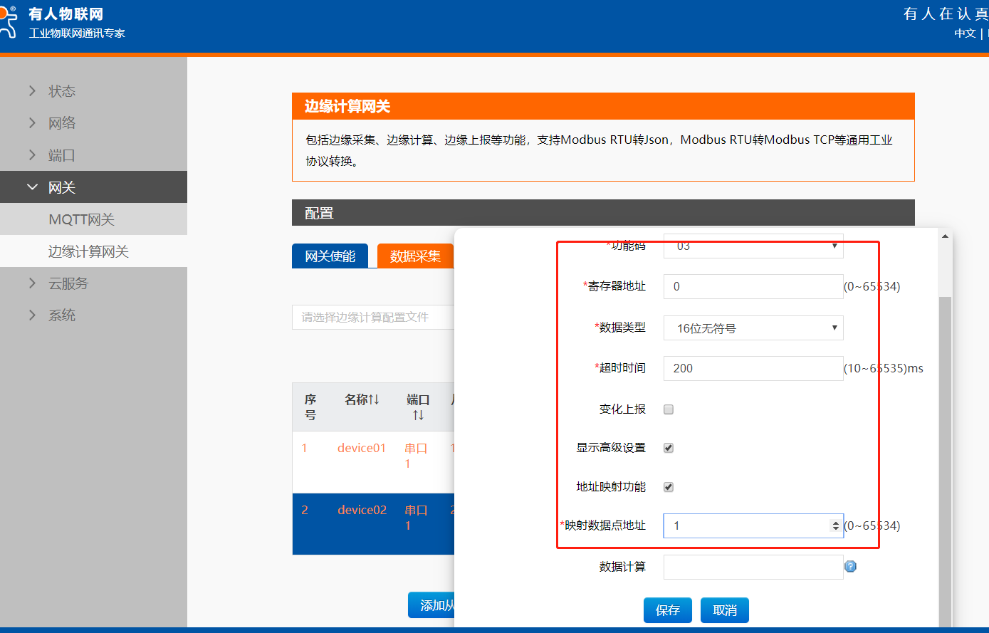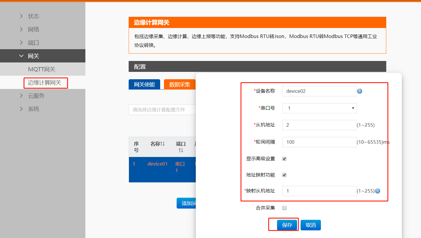 (1)進入N510的內(nèi)置網(wǎng)頁,選擇網(wǎng)關(guān)下面的邊緣計算網(wǎng)關(guān)
