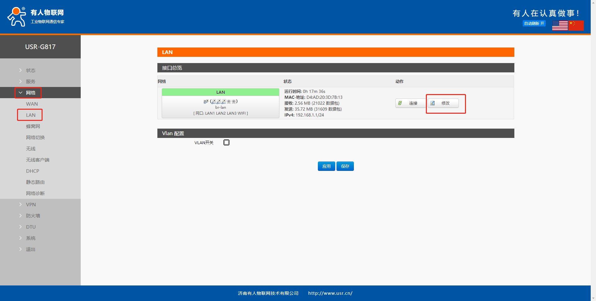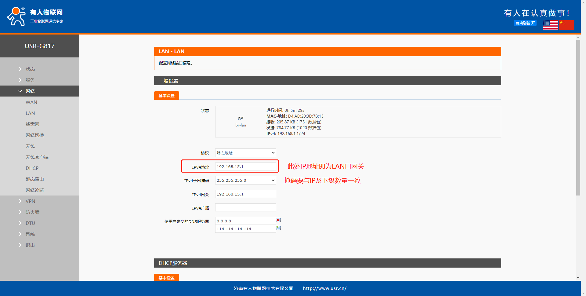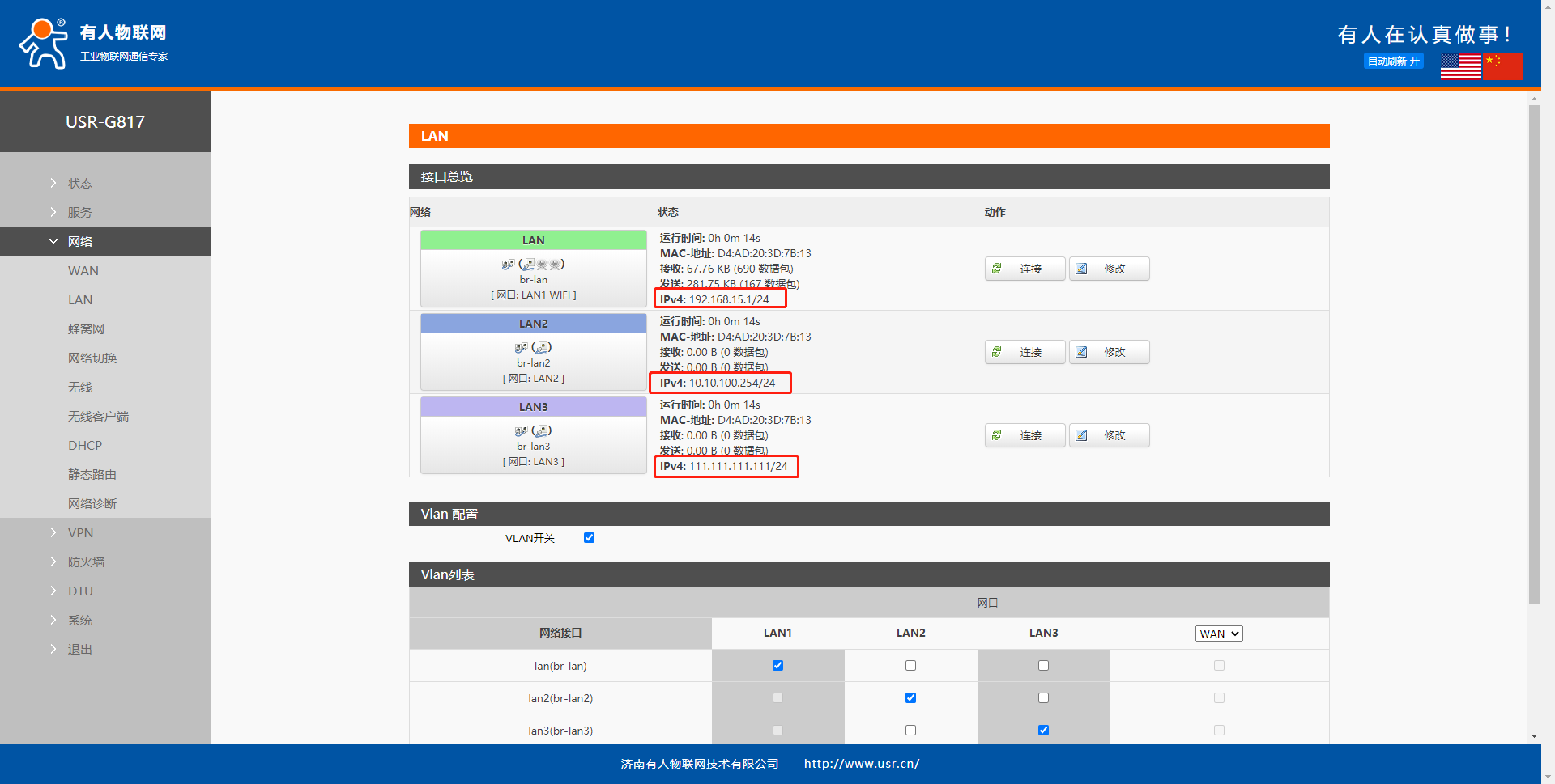 USR-G817 修改LAN口IP網(wǎng)段的方法
