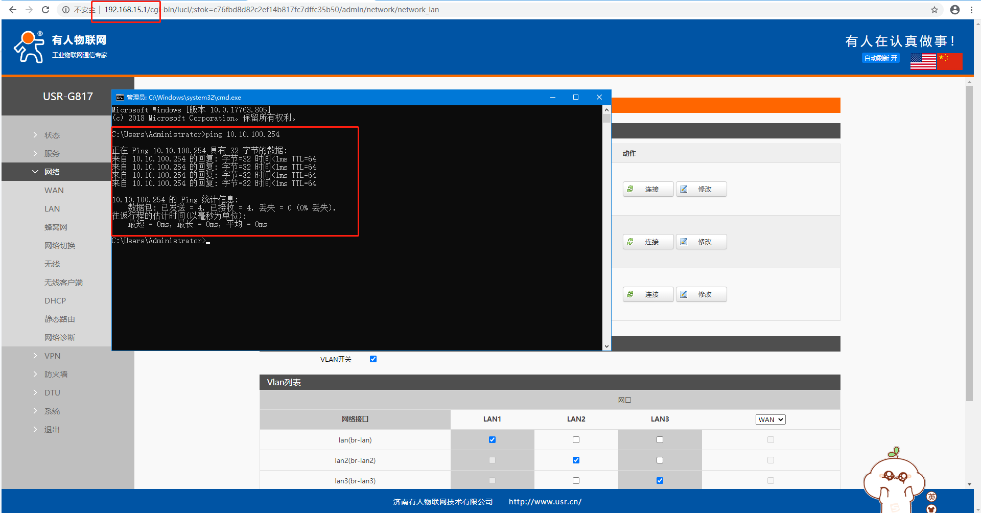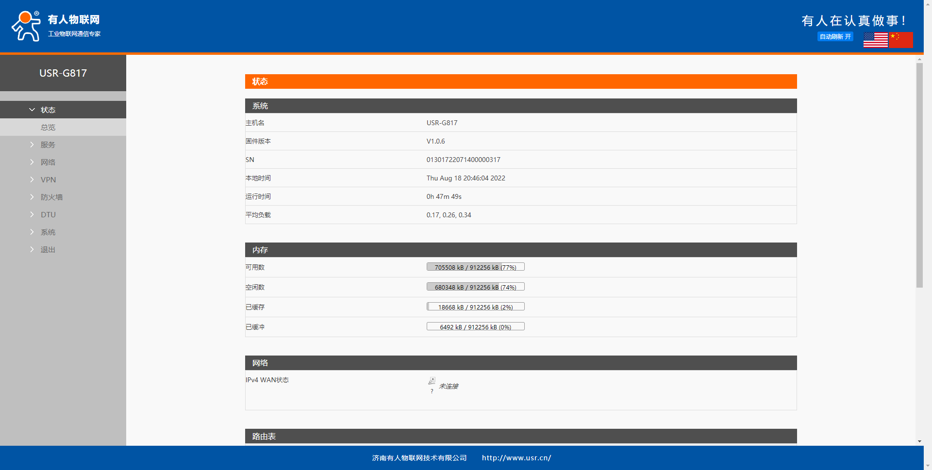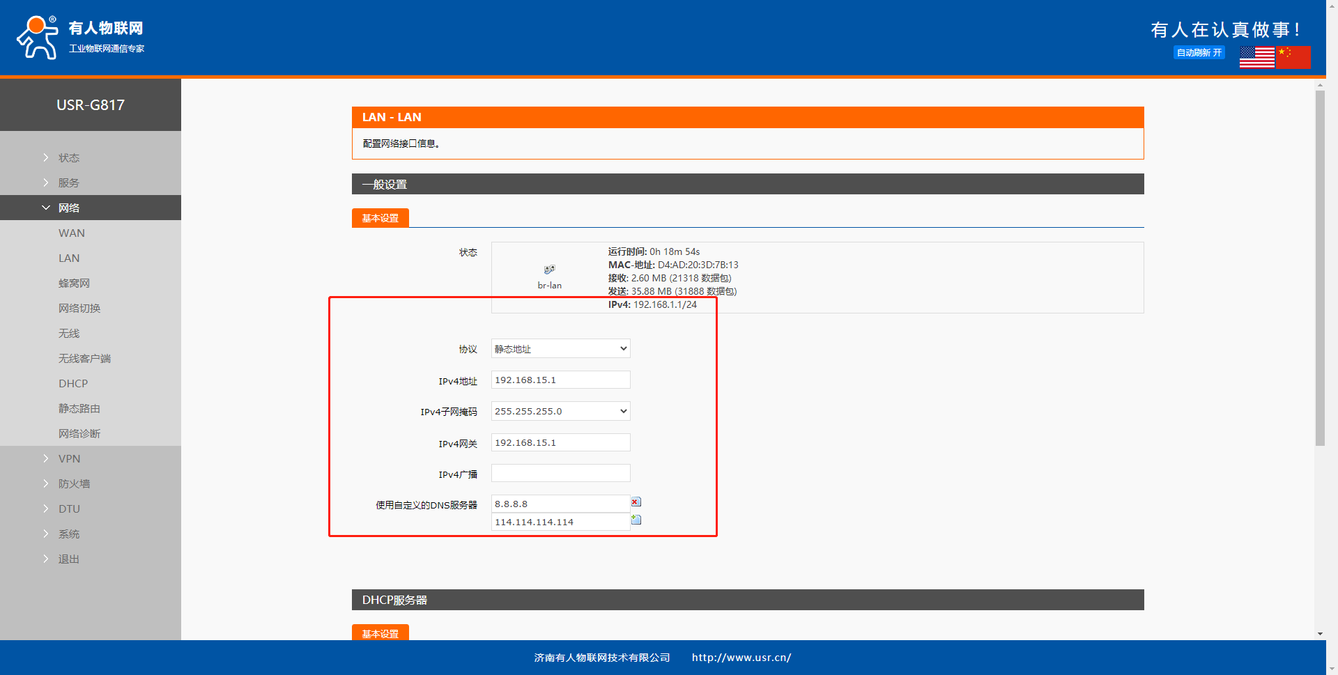 USR-G817 修改LAN口IP網(wǎng)段的方法