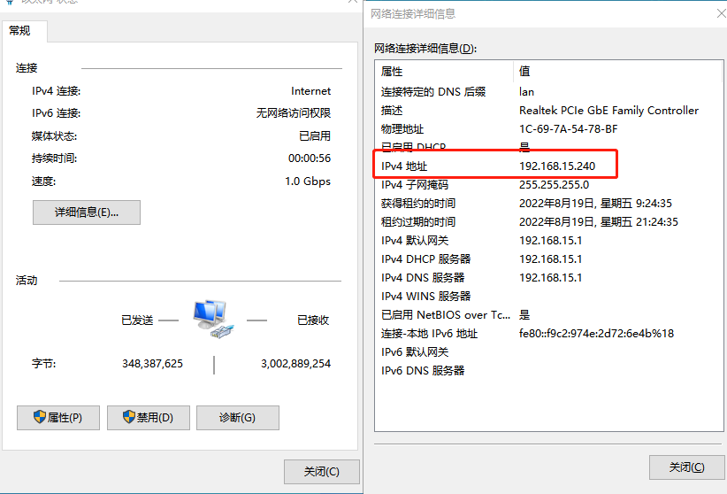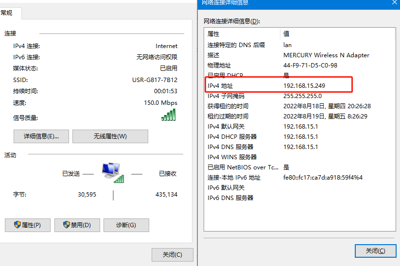 5待設備重啟成功后,重新查看電腦獲取的IP,變成192.168.15.249,網(wǎng)關為192.168.15.1,瀏覽器輸入192.168.15.1進入配置網(wǎng)頁。
