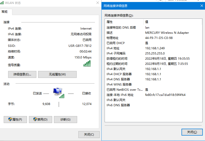1、PC通過WIFI或者有線LAN口連接G817,電腦開啟DHCP,自動獲取IP