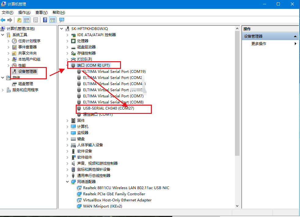 2、檢查USR-RS485串口線的COM口號(hào),點(diǎn)擊電腦計(jì)算機(jī),右擊鼠標(biāo),點(diǎn)擊設(shè)備管理器,查看端口,確認(rèn)USB-RS485串口線的COM口號(hào),有人測(cè)試電腦是COM27。