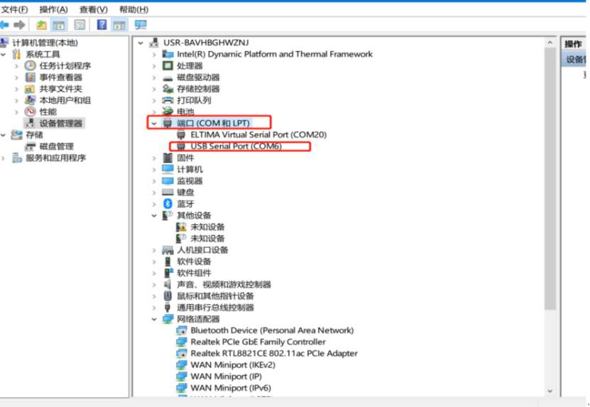 1、云平臺配置完成后,接下來配置設(shè)備相關(guān)參數(shù)。準(zhǔn)備一根USB轉(zhuǎn)232串口線,插在電腦上識別到的COM口在電腦設(shè)備管理器查看。