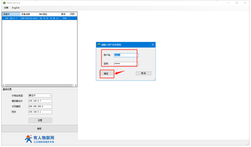用H7系列配置軟件搜索410s設(shè)備,單擊搜索