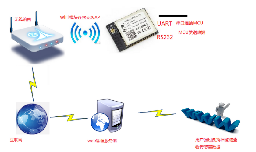 解決問(wèn)題:WiFi模塊一般透明傳輸數(shù)據(jù)是通過(guò)TCP 或者UDP 協(xié)議,以socket通訊的方式與服務(wù)器建立鏈接,目前有許多控制和管理設(shè)備的方式不是通過(guò)SOCKET通訊,是通過(guò)web網(wǎng)頁(yè)管理和控制串口設(shè)備,只需要用戶(hù)可以上網(wǎng),通過(guò)瀏覽器即可控制和查詢(xún)串口設(shè)備的數(shù)據(jù)狀態(tài)等信息。