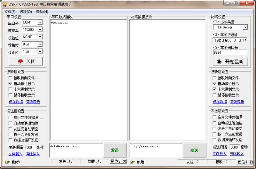 重啟模塊,完成啟動(dòng)后,向模塊的串口發(fā)送數(shù)據(jù)data=http://m.lifj.com.cn,則會(huì)從模塊的串口接收到http://m.lifj.com.cn。
