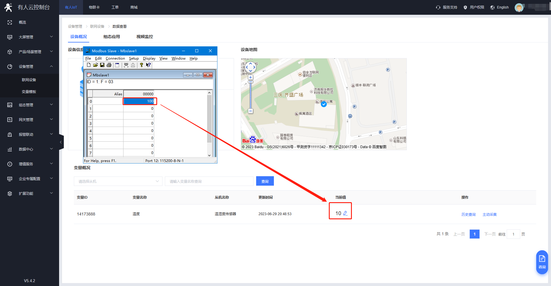 云端下發(fā)采集指令,modbus slave模擬串口設(shè)備上傳數(shù)據(jù)