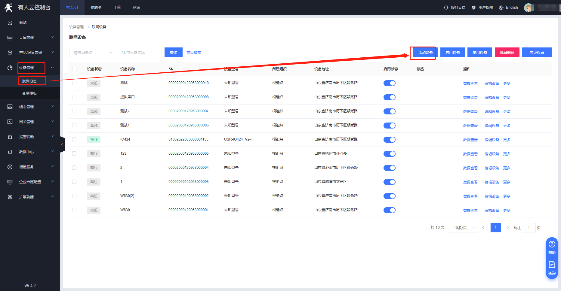 2.在設(shè)備管理,添加設(shè)備中添加設(shè)備