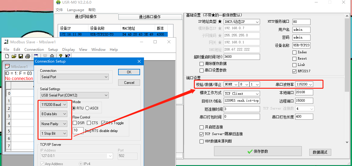 四、Modbus slave軟件模擬串口設(shè)備,串口參數(shù)設(shè)置一致