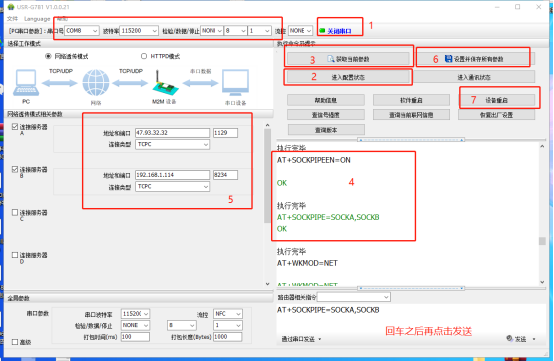 設(shè)置并保存所有參數(shù),設(shè)備重啟,待串口打印啟動信息USR-G781,表示啟動完成。