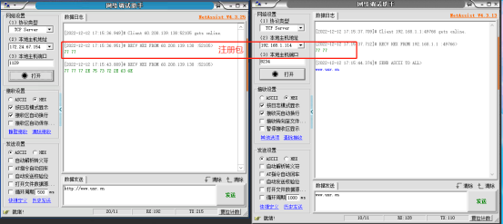 3、將電腦的端口監(jiān)聽打開,G781的linkA和linkB指示燈會亮起來,表示兩路socket成功建立并連接。這里我設(shè)置了注冊包7777。
