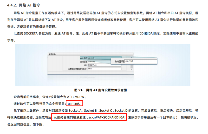 1) 打開設(shè)備對應(yīng)的說明書,找到關(guān)于網(wǎng)絡(luò)AT指令章節(jié),看一下網(wǎng)絡(luò)AT指令格式