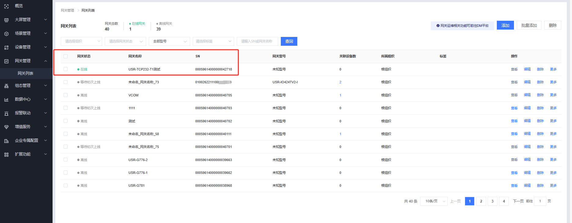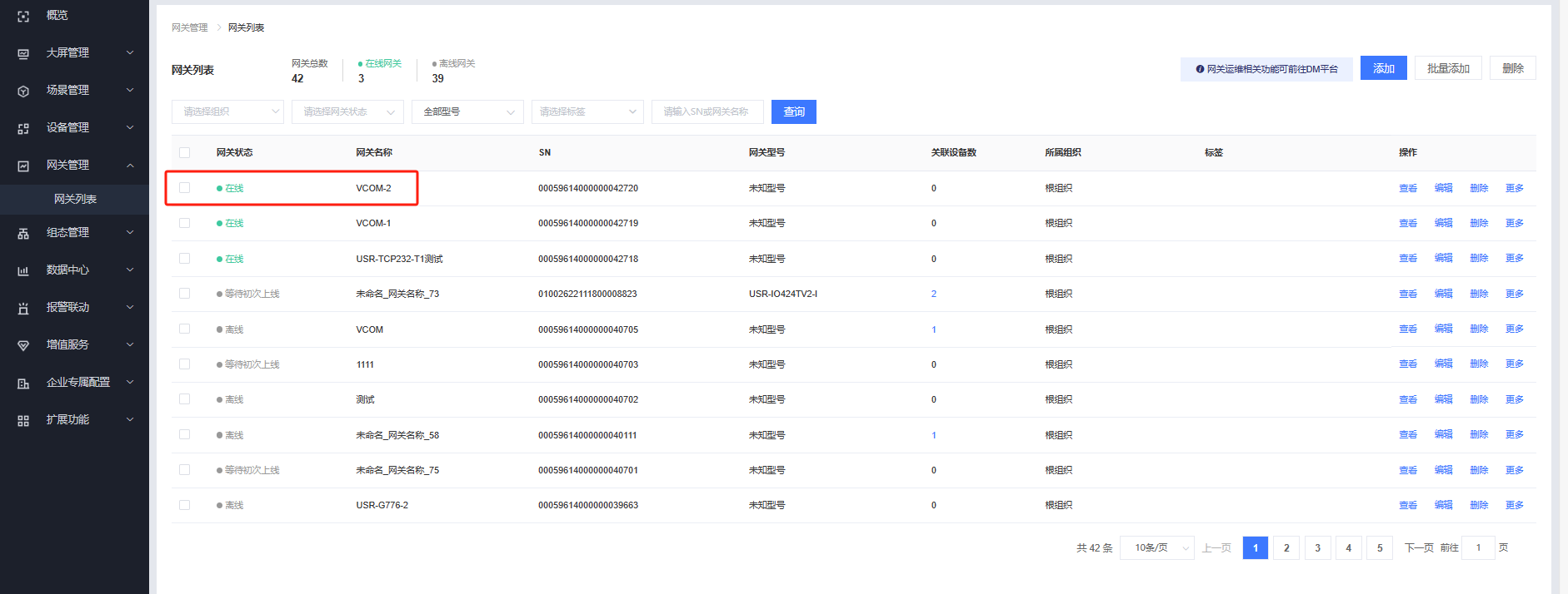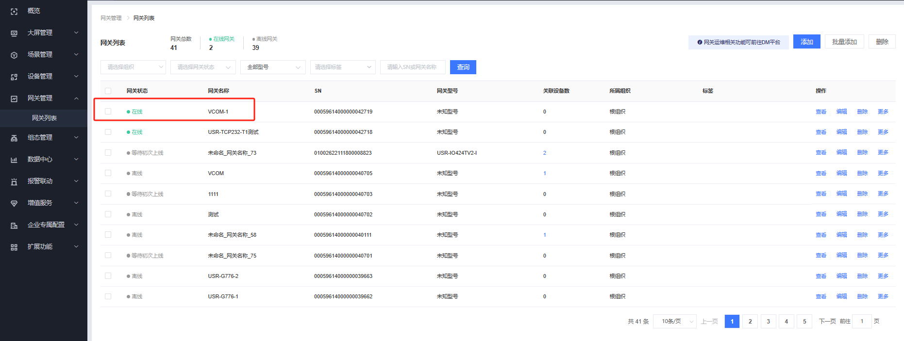 有人云--網(wǎng)關(guān)管理--網(wǎng)關(guān)列表--添加:VCOM-1,根組織,“SN不支持,點(diǎn)這里”,開啟有人云透傳,點(diǎn)擊保存即可