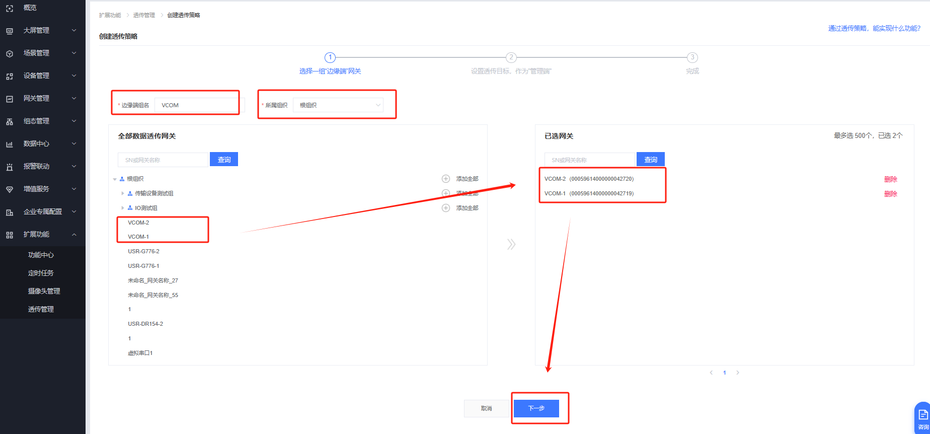 擴(kuò)展功能---透傳管理---創(chuàng)建透傳策略
