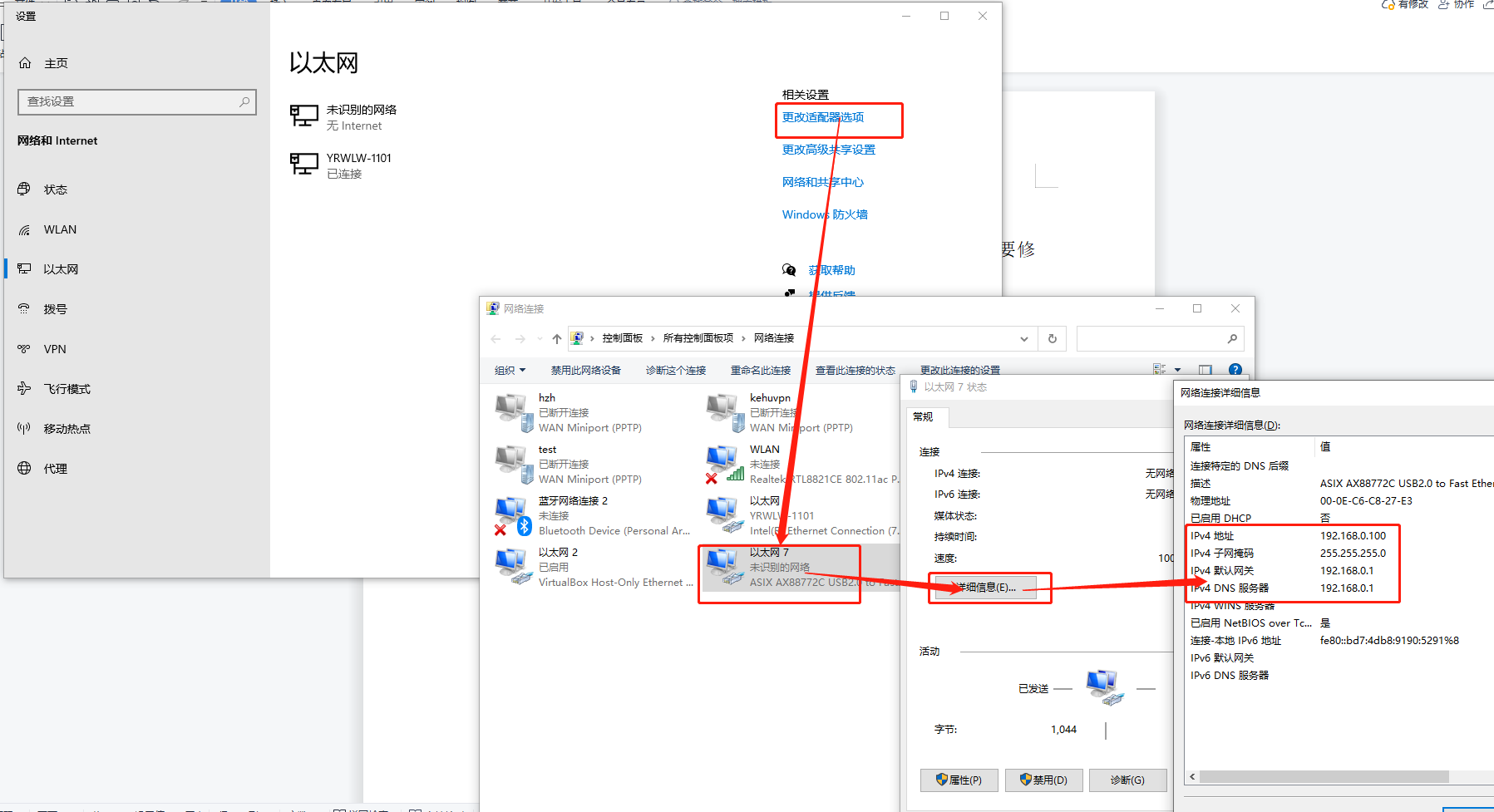 1、USR-M100設(shè)備直連電腦,設(shè)備默認(rèn)192.168.0.7,電腦IP地址也要修改為同網(wǎng)段IP,網(wǎng)關(guān)與DNS設(shè)置為192.168.1.1