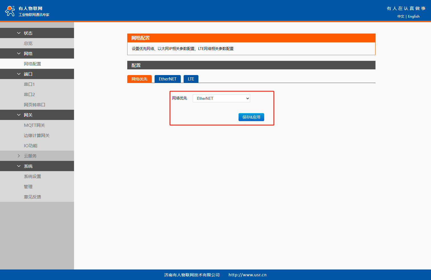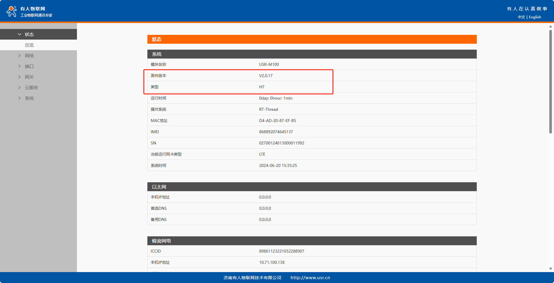 3、進(jìn)入到USR-M100內(nèi)置網(wǎng)頁(yè)