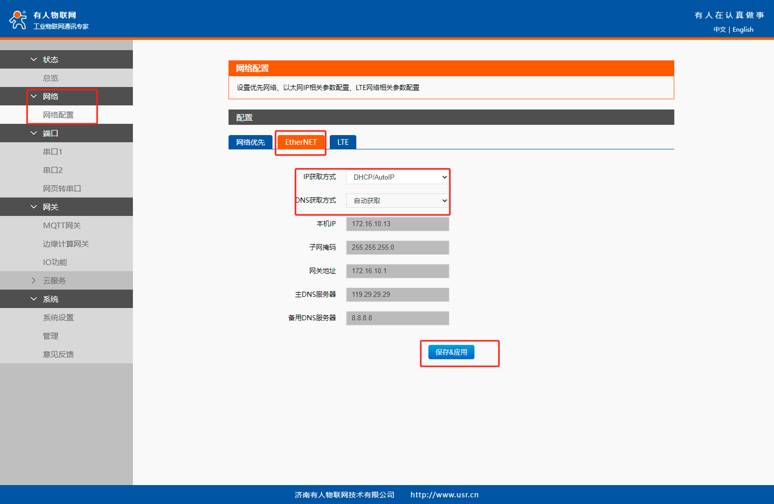 4、設(shè)置網(wǎng)絡(luò)連接方式,網(wǎng)絡(luò)優(yōu)先設(shè)置為以太網(wǎng)優(yōu)先,IP類(lèi)型設(shè)置為DHCP,保存應(yīng)用,繼續(xù)配置。