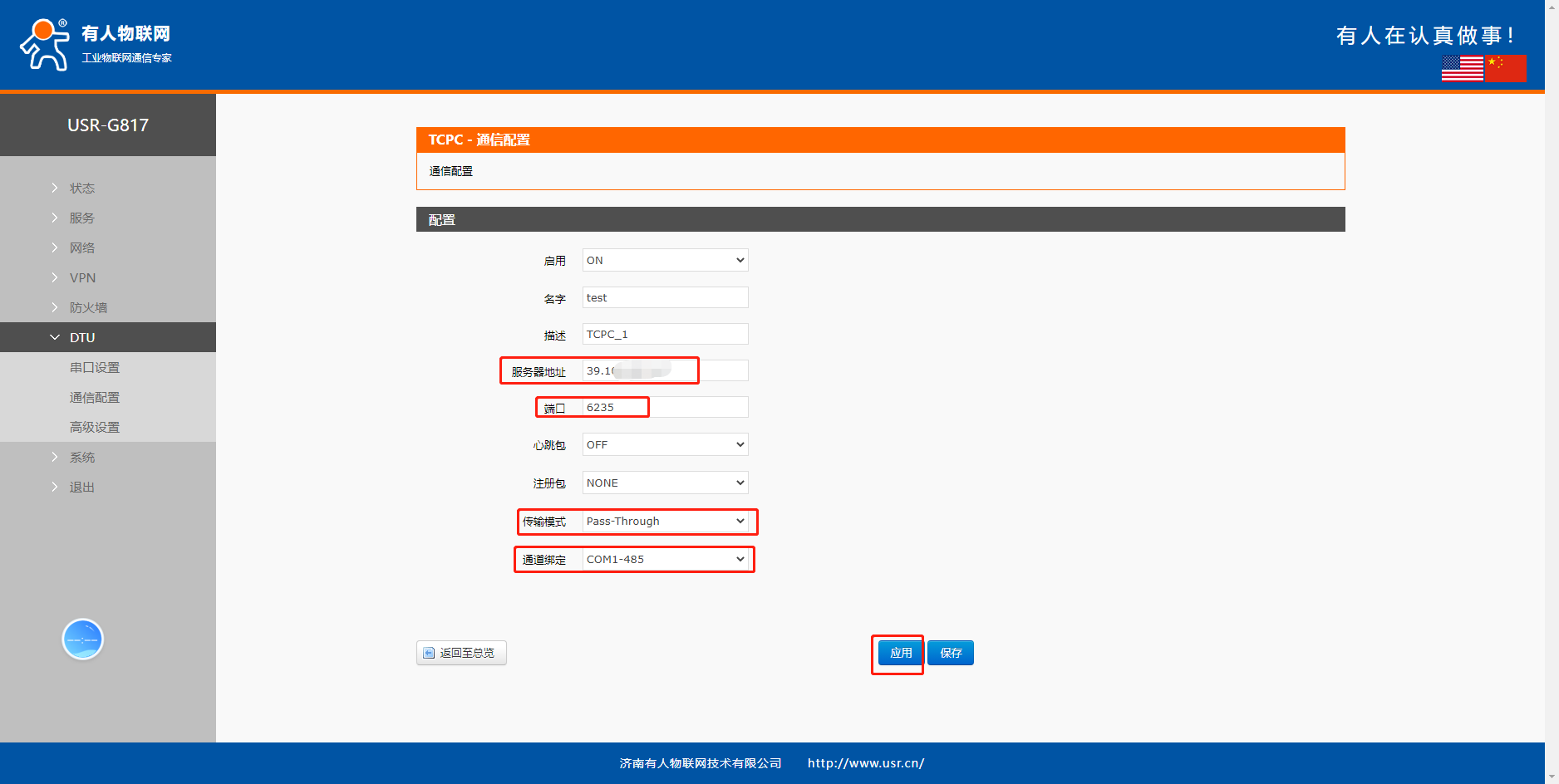 USR-G817連接遠程服務(wù)器進行數(shù)據(jù)通訊