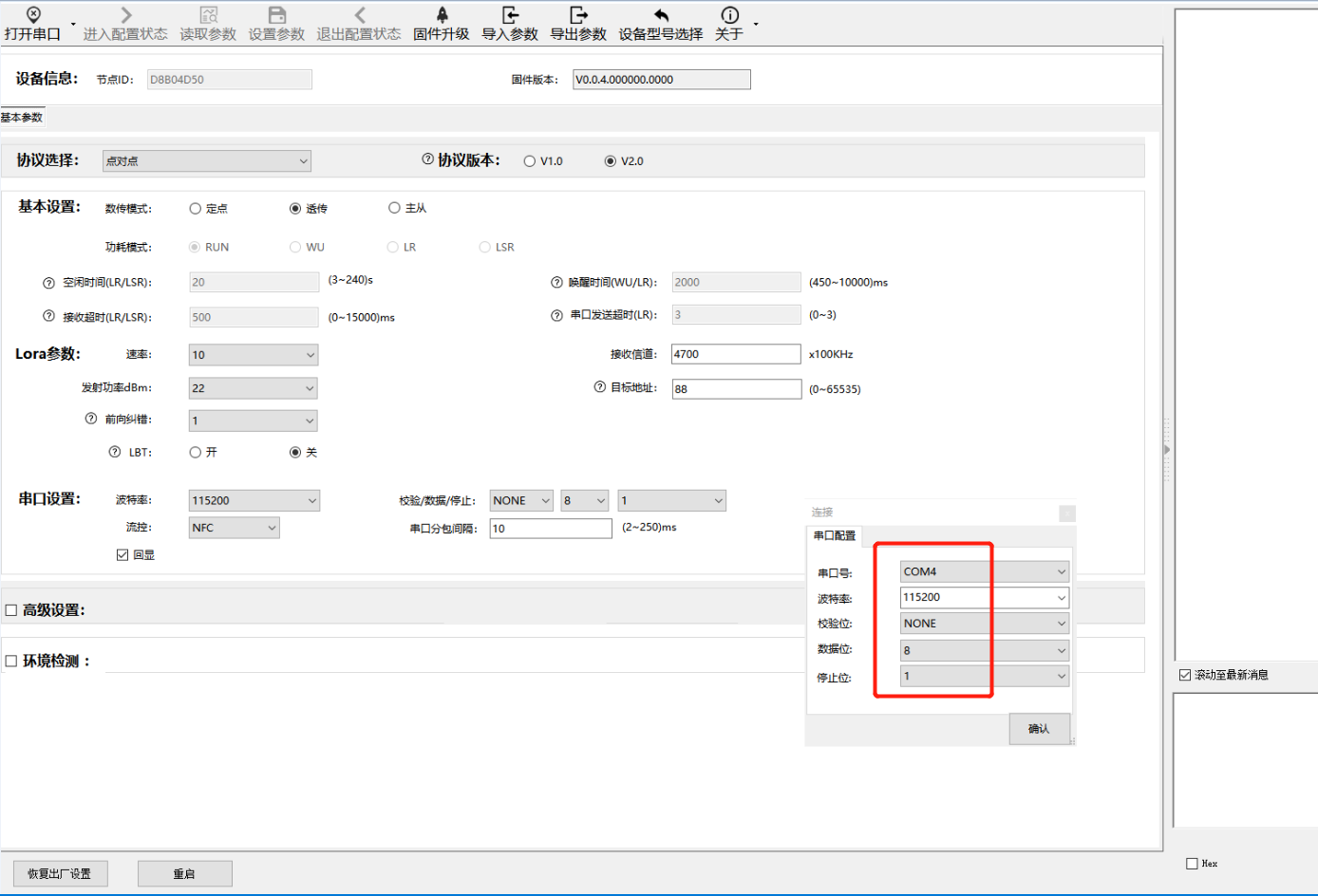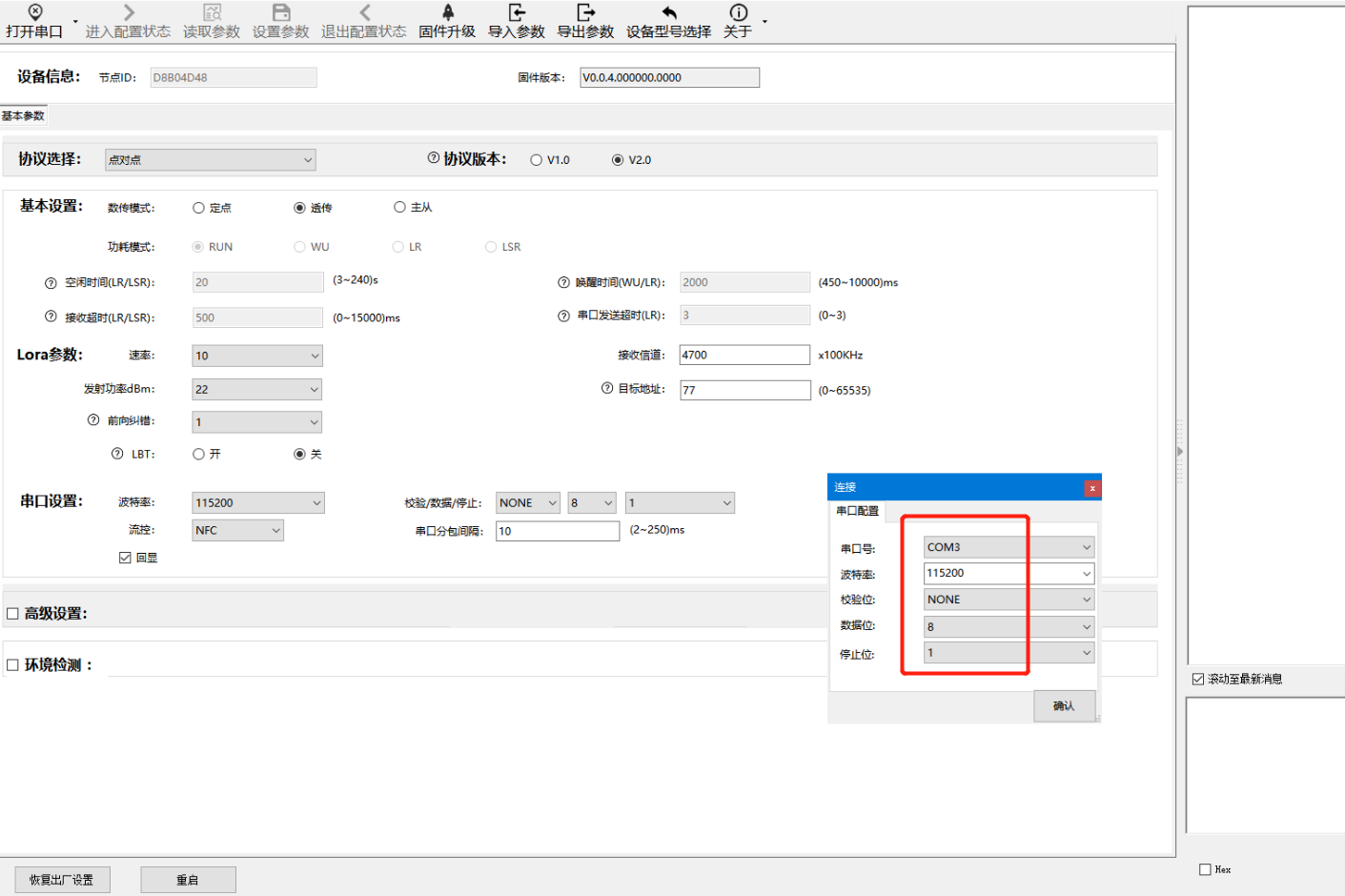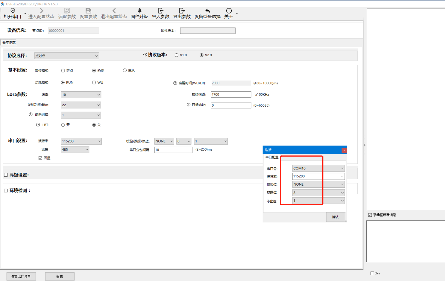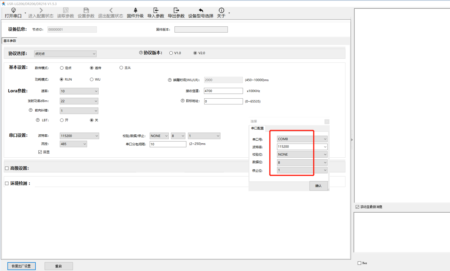 然后選擇DR206的默認(rèn)參數(shù):115200;N;8;1
