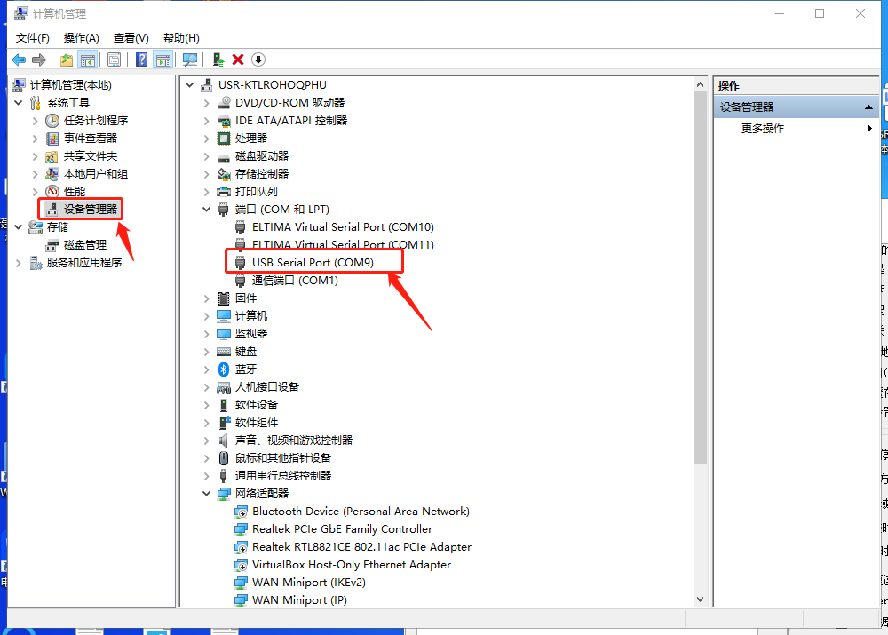 5、在設(shè)備管理器中查看端口信息,確定USR-TCP232-EVB評(píng)估板串口使用的串口號(hào),如下圖所示電腦端口號(hào)為COM9。