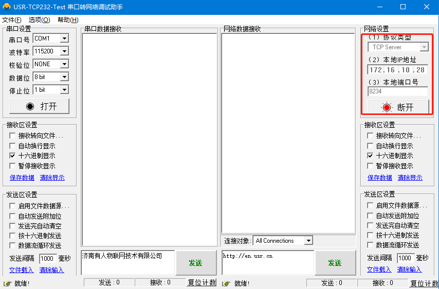 4、USR-TCP232-TEST串口調(diào)試助手軟件官網(wǎng)下載鏈接:http://m.lifj.com.cn/Download/27.html