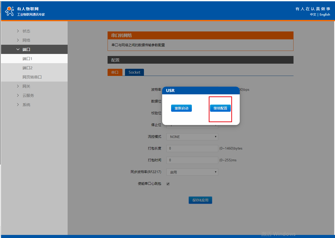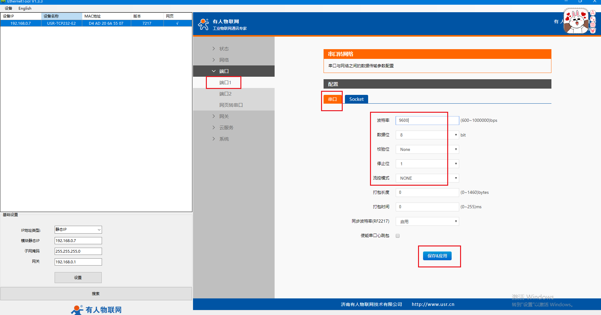 設(shè)置E2的串口波特率和要接的串口設(shè)備一致,測(cè)試設(shè)置為9600,n,8,1