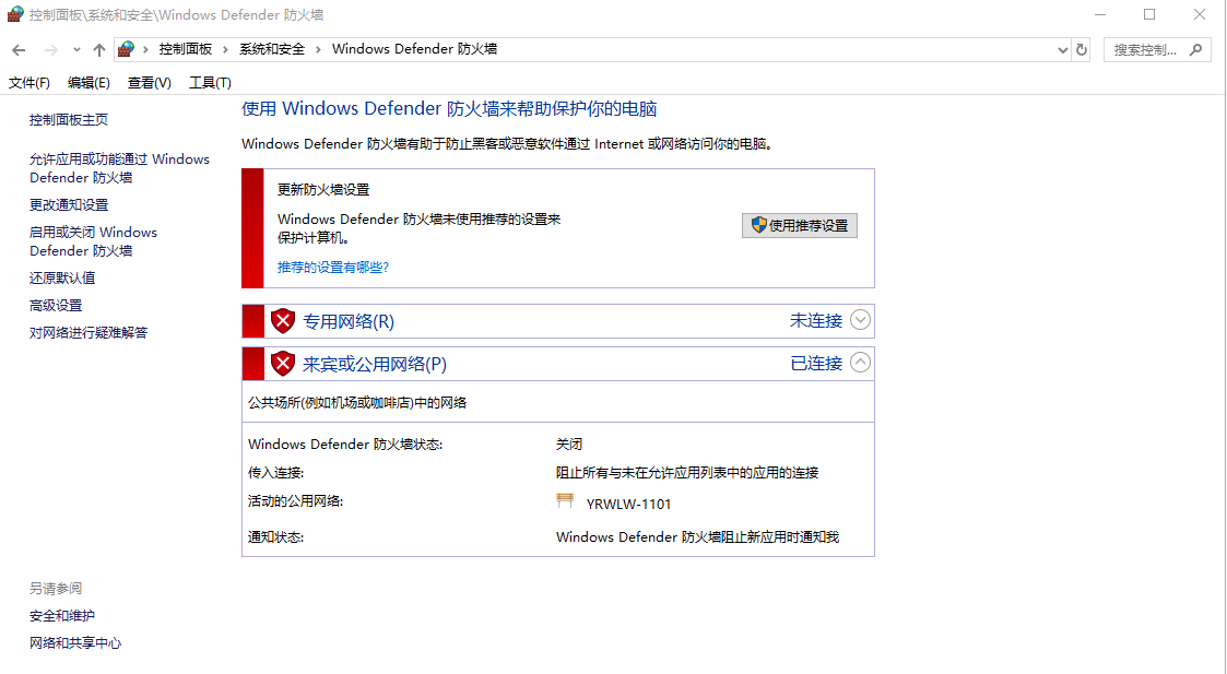 1.控制面板--網(wǎng)絡(luò)和Internet--網(wǎng)絡(luò)和共享中心找到“windows防火墻”選項(xiàng),關(guān)閉防火墻并禁,并關(guān)閉電腦殺毒軟件.