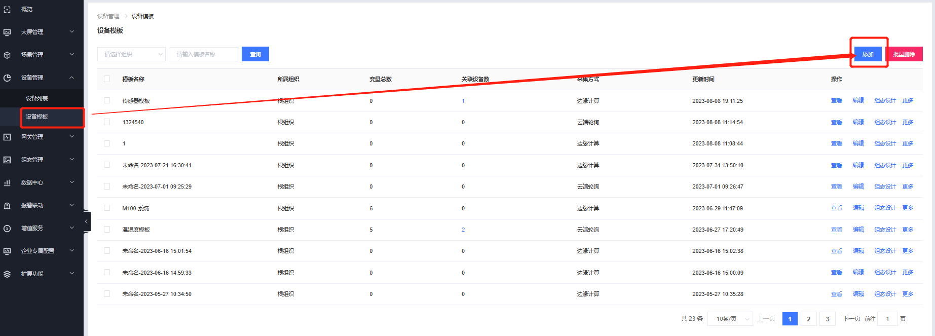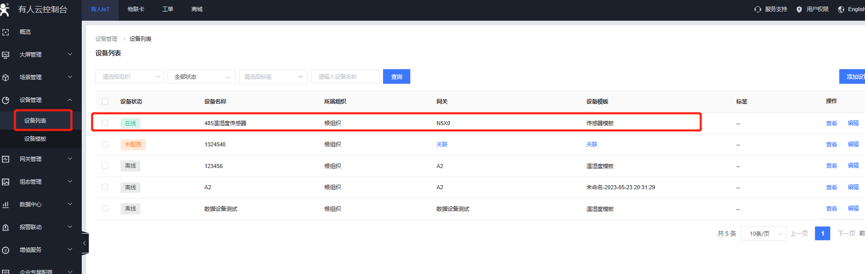8、在設(shè)備列表信息展示界面,顯示關(guān)聯(lián)的網(wǎng)關(guān)與設(shè)備模板表示云端配置已完成。