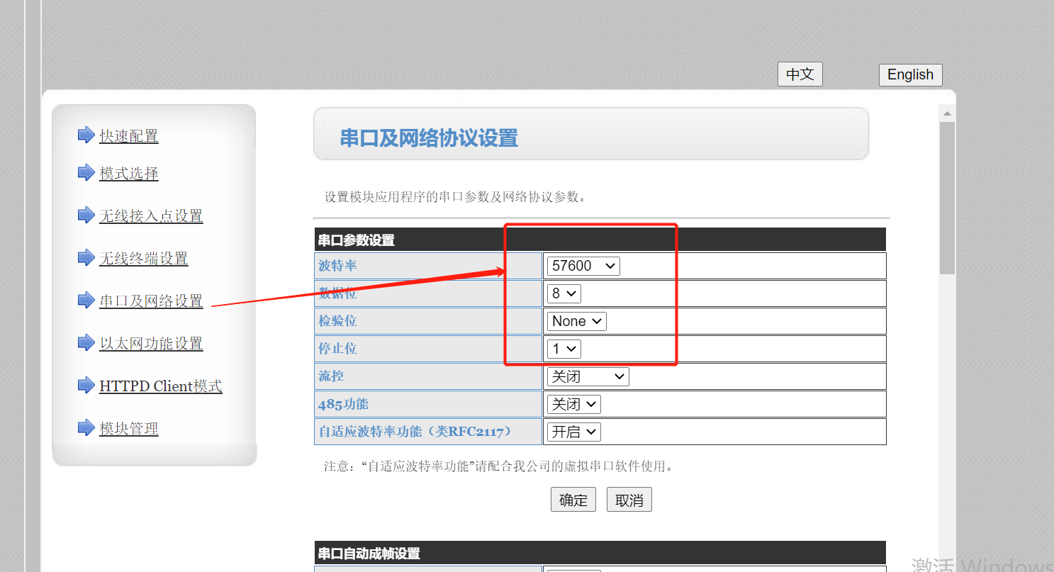 3.設(shè)置w610為tcp sever,本地端口號(hào)8899,串口參數(shù)如下