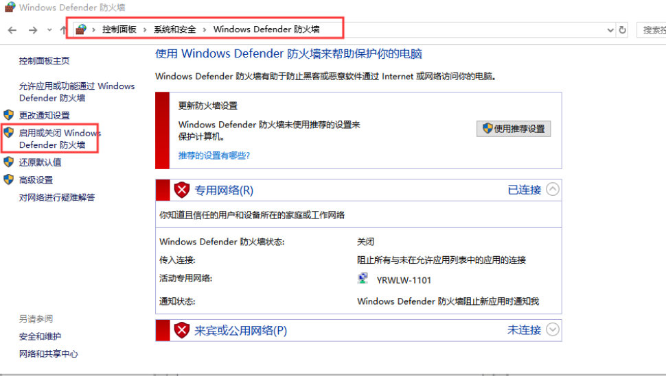 1、按路徑:控制面板---網(wǎng)絡(luò)和Internet--網(wǎng)絡(luò)和共享中心找到“windows防火墻”和“更改適配器設(shè)置”選項,關(guān)閉防火墻并禁用與本次測試無關(guān)的網(wǎng)卡,并關(guān)閉電腦殺毒軟件。