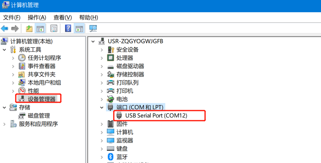 4、E2模塊接在EVK評估板上,串口接232轉(zhuǎn)usb到電腦,在電腦設(shè)備管理器上生成一個com12.