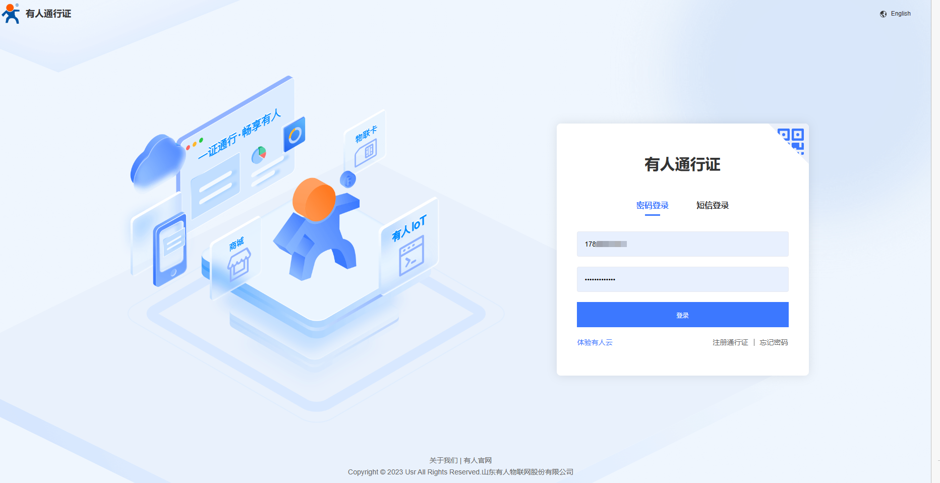 (1)登錄有人云平臺:https://account.usr.cn/#/login?type=mp_scada&logout=1