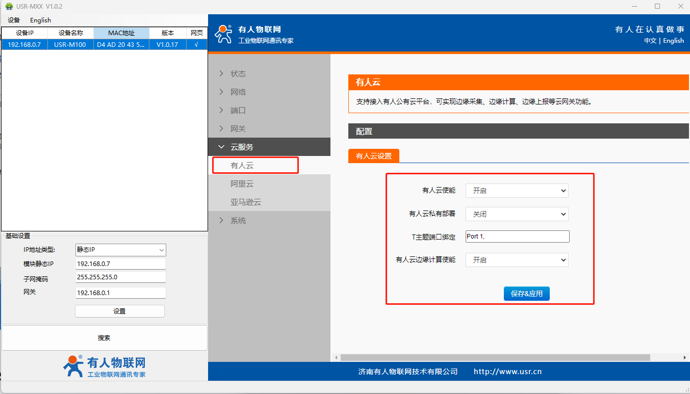 (6)“云服務(wù)”-“有人云”界面配置