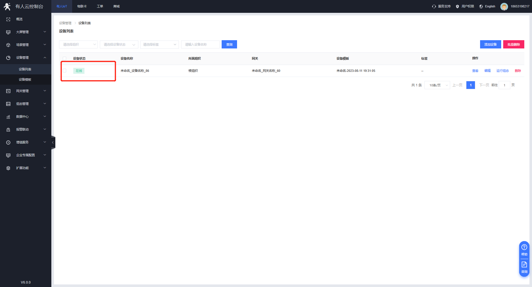 稍等一會,在有人云界面,您會看到W610已經(jīng)上線。