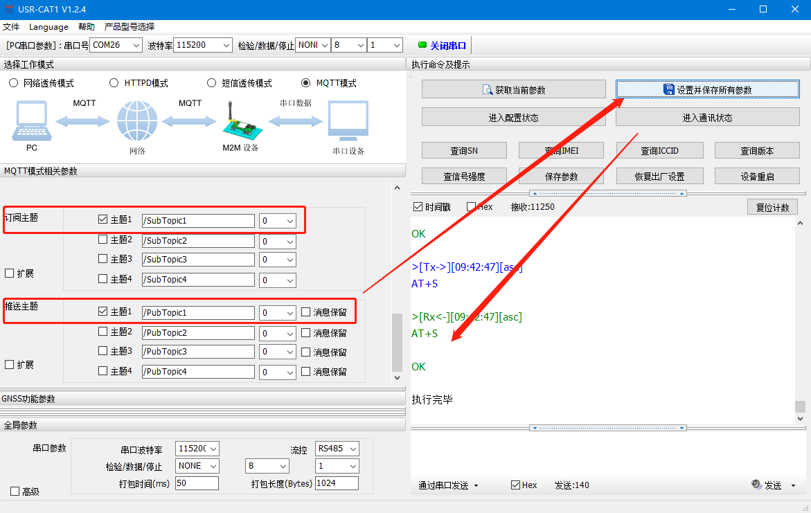 參數(shù)設(shè)置完成后點(diǎn)擊設(shè)置并保存所有參數(shù),設(shè)備重啟