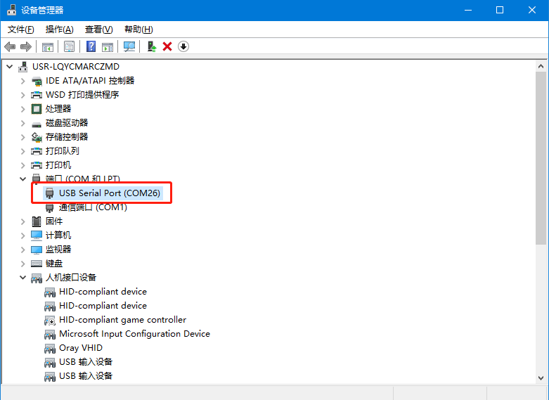 電腦鼠標(biāo)點(diǎn)擊計算器管理,右擊,點(diǎn)開設(shè)備管理器,點(diǎn)擊端口,查看接USR-G780S鏈接RS232串口線COM口號。