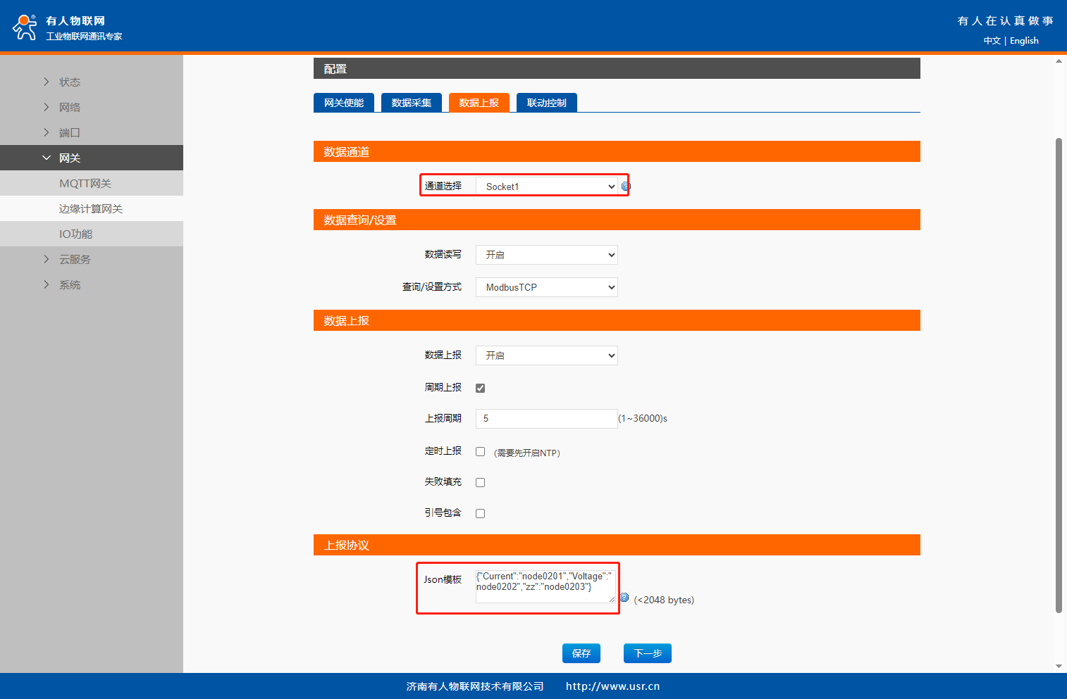 數(shù)據(jù)上報選擇“開啟”,上報周期:5s(自定義);