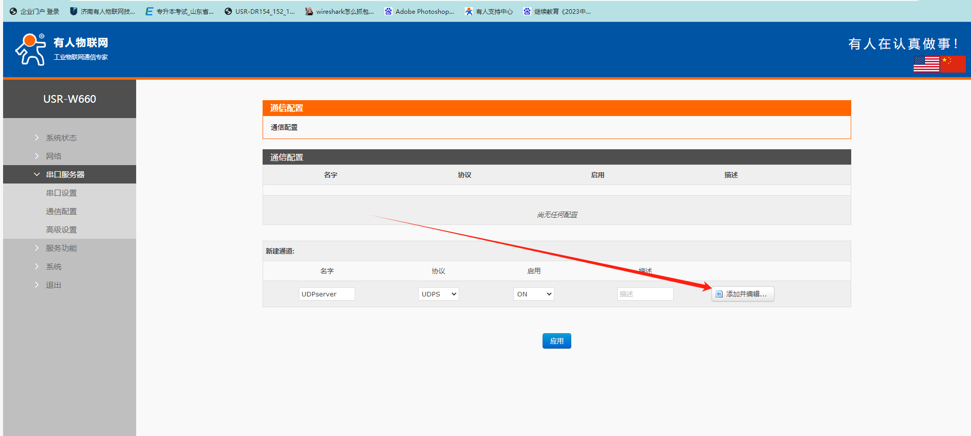 4、W660設(shè)置為UDP SERVER.設(shè)置方法如下,點(diǎn)擊添加并編輯
