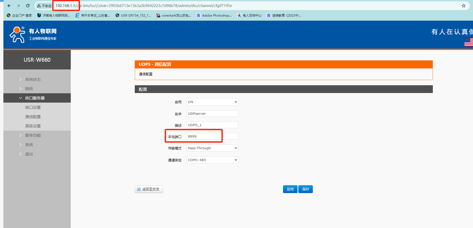 設(shè)置設(shè)備本地端口為8899 ,服務(wù)器的IP就是W660的本身的IP192.168.1.1不用設(shè)置。設(shè)置完參數(shù)保存重啟才會(huì)生效