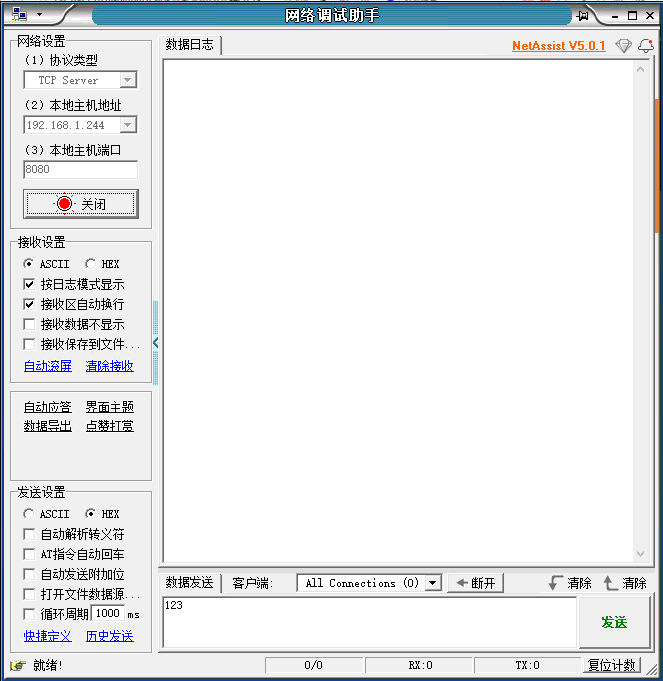 4、上位機服務(wù)器的IP為:192.168.1.244,端口為8080;