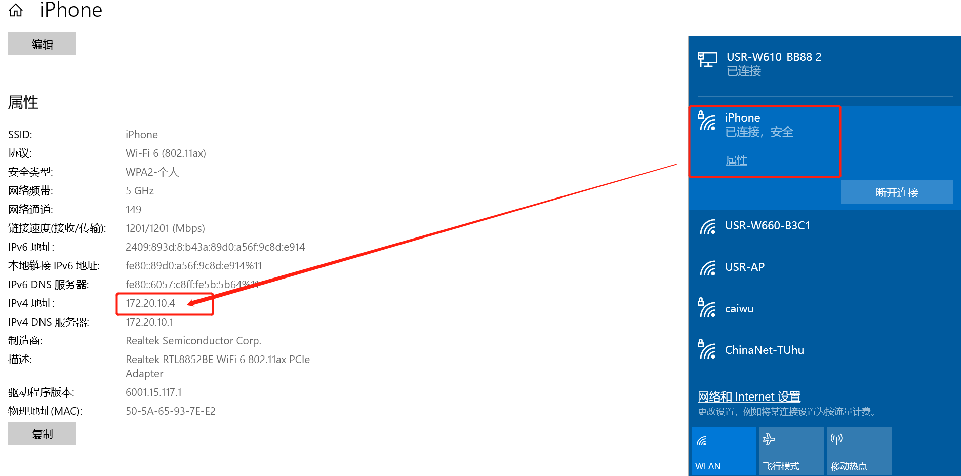 電腦也連接同一個(gè)APwifi后,獲取到跟W660在相同網(wǎng)段的1個(gè)ip;