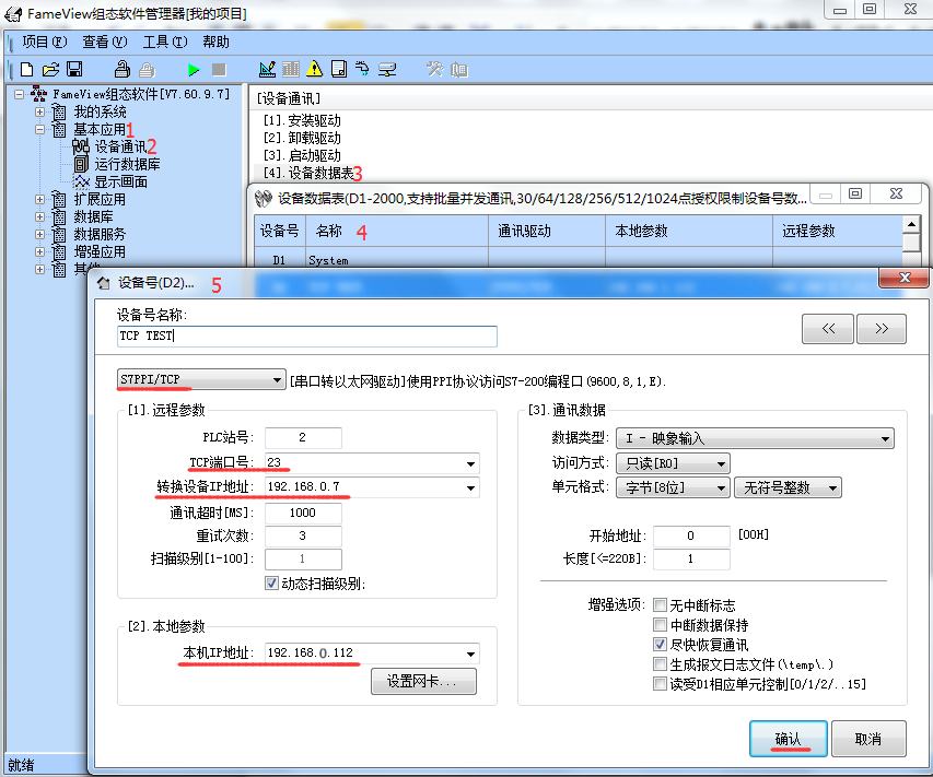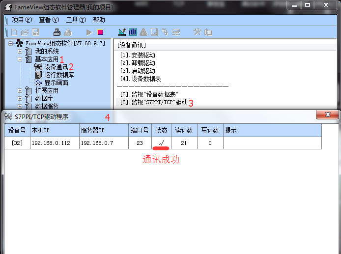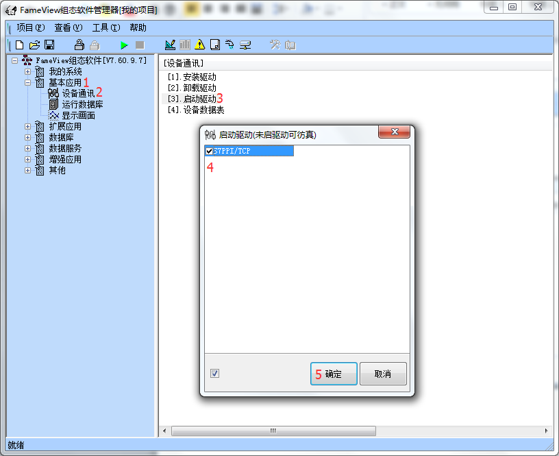e)基本應(yīng)用--設(shè)備通訊--啟動(dòng)驅(qū)動(dòng)--S7PPI/TCP--確定