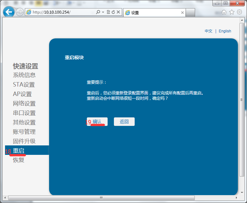 e)將所有參數(shù)設(shè)置好,重啟模塊使參數(shù)生效。