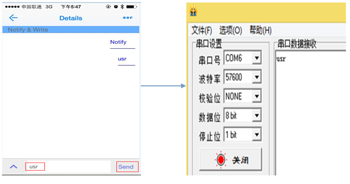 11、通信完成將串口通信助手、手機(jī)APP及手機(jī)藍(lán)牙關(guān)閉,USR-BLE100斷電。