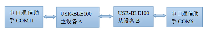 1、提供兩個USR-BLE100評估板A、B,A評估板做為主設(shè)備,B評估板做為從設(shè)備。
