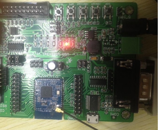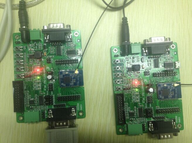 2、分別給兩個評估板供電12V,對USR-BLE100進(jìn)行模式的設(shè)置。